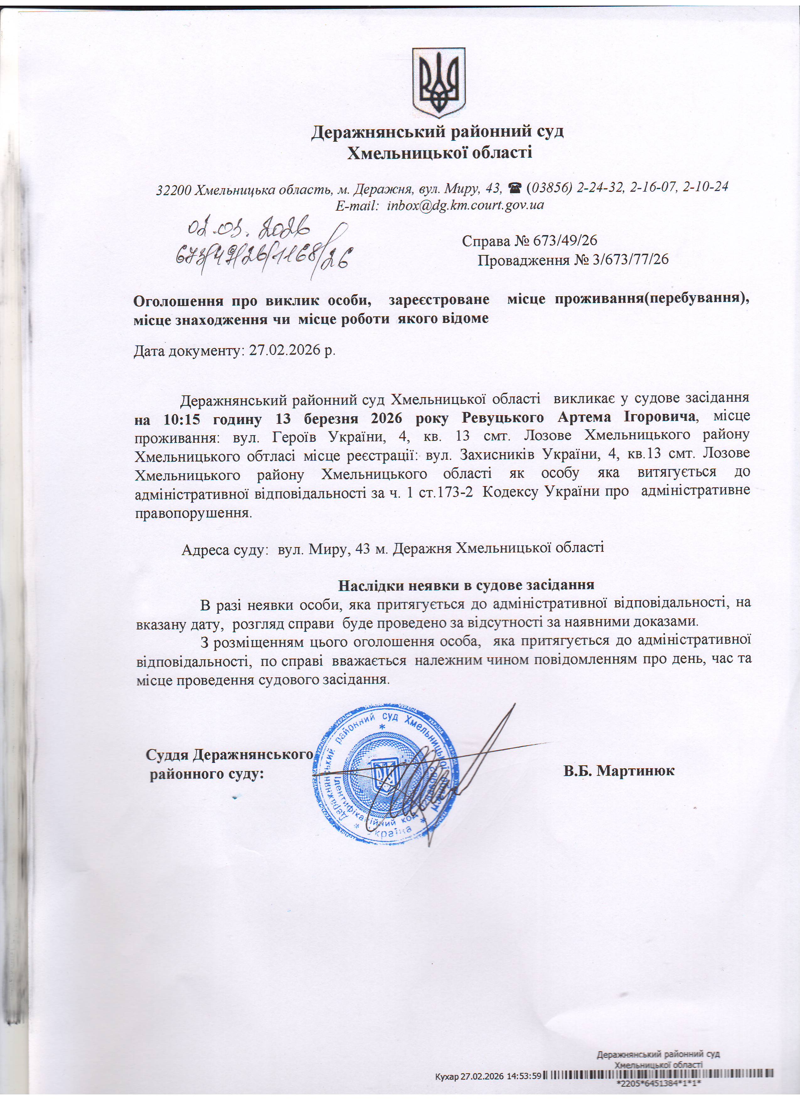 Деражнянський районний суд Хмельницької області